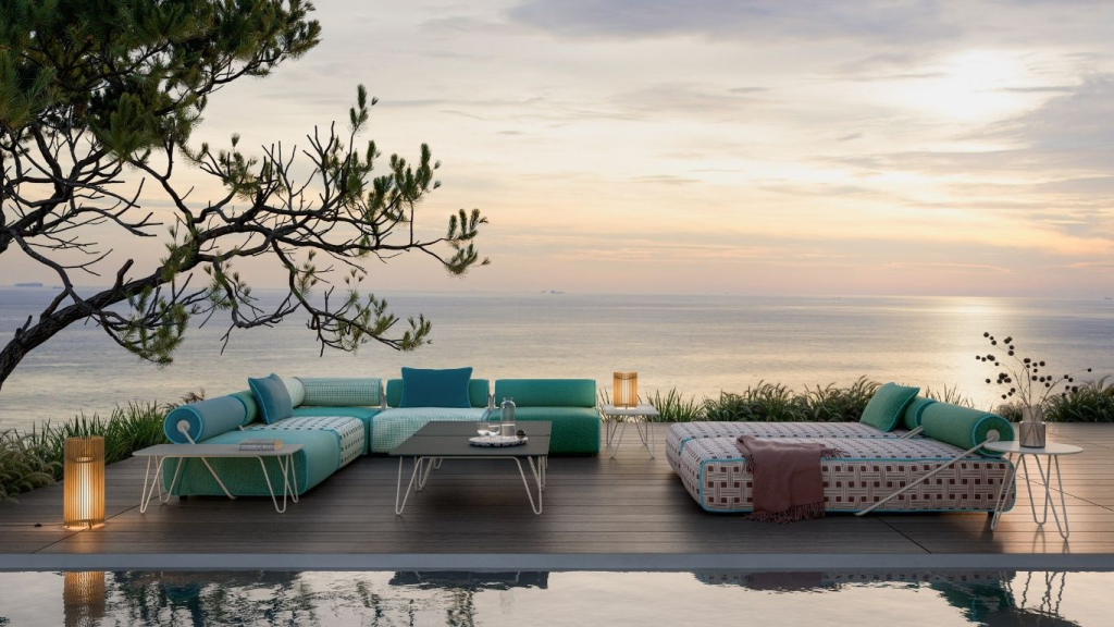 Designed to ignite the imagination, this new range brings chromatic joy to any outdoor setting. Picture matcha green oversized daybeds, cobalt blue modular lounges, and rosé-hued accent chairs with tailored piping—each one an expression of personality and purpose. Coordinating cushions, sculptural side tables, and ambient accessories complete the look, offering a curated aesthetic that’s anything but an afterthought.