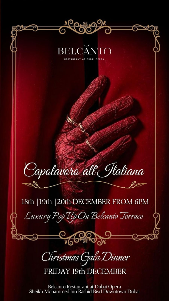 From December 18 to 20, 2025, the magic of the festive season finds its most elegant expression in the heart of Dubai. Set against the iconic backdrop of Belcanto at Dubai Opera, Capolavoro all’Italiana – Christmas Edition invites guests into a world where Italian artistry, craftsmanship, and festive indulgence come together in perfect harmony.